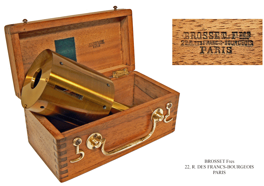 Dans son catalogue de 1901 - 1902, L'INDUSTRIE FRANCAISE DES INSTRUMENTS DE PRÉCISION indique que la Maison fondée en 1855, par A. PIERSON, auquel les frères BROSSET ont succédé en 1873, s'occupe spécialement de la construction des instruments de géodésie, de topographie, de nivellement, etc... |