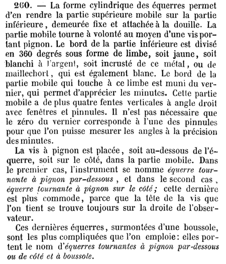 La Fig. 102 du "Traité élémentaire d'Arpentage" montre les deux positions possibles, P et Q, de la "vis à pignon" nécessaire pour faire tourner le cylindre supérieur autour de son axe : |