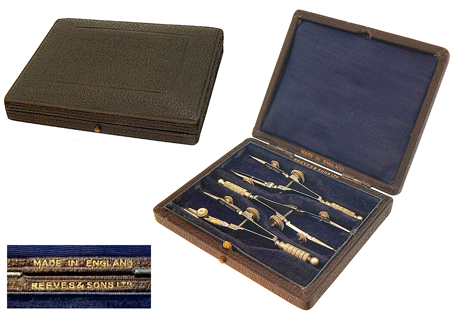 Pochette de 3 compas à balustre par Reeves & Sons Ltd - 1ère partie du XXe siècle |