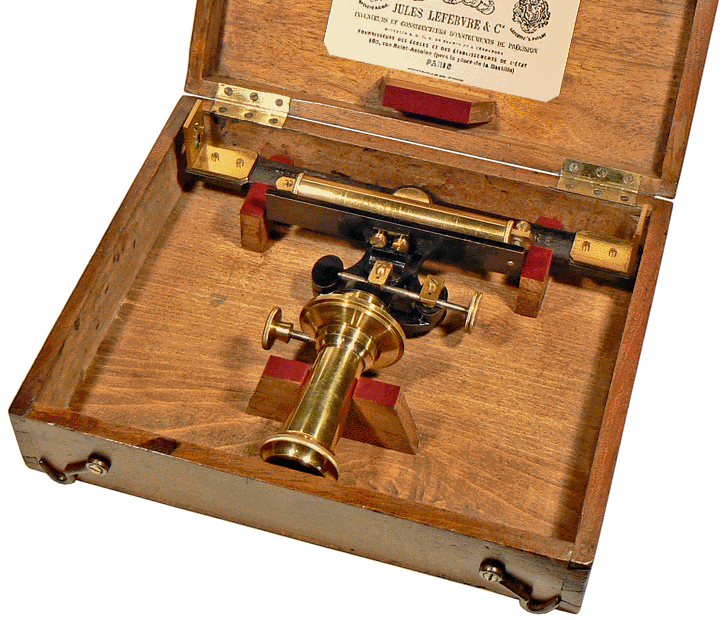 Niveau plongeant à pinnules, type n° 20, de Jules Lefebvre et Cie - Hauteur 19 cm, longueur 24 cm - Vers 1875 |