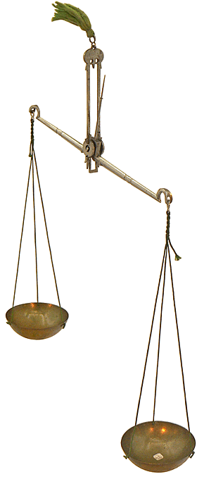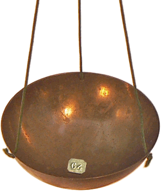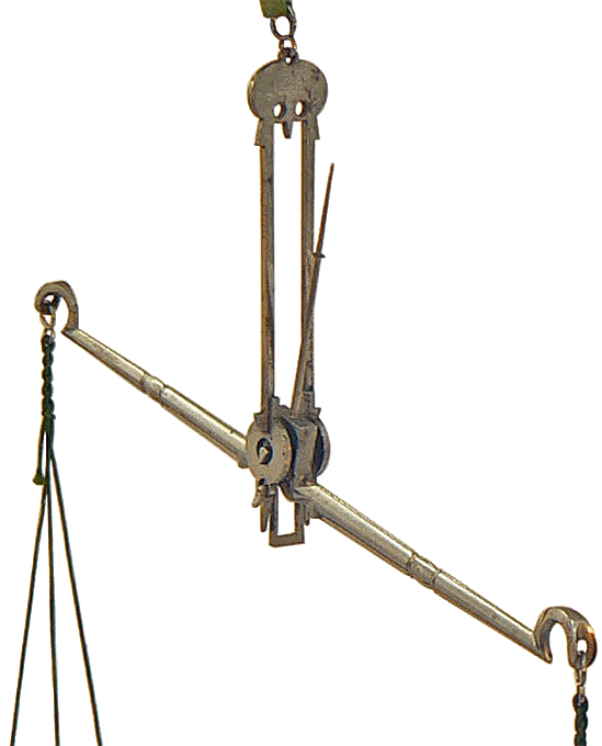 Le fléau mesure 12 cm et le diamètre des coupelles est égal à 4 cm. Pour obtenir l'image précédente, l'équilibre initial est rompu en déposant, dans la coupelle droite, la subdivision de 1/64 carat. Ce déséquilibre, reproductible, renseigne sur la bonne sensibilité de l'instrument. Ci-dessous, la subdivision utlisée est placée sur le couvercle du coffret, à l'extrémité de la pince de préhension. Elle équivaut à un peu plus de 3 mg. |