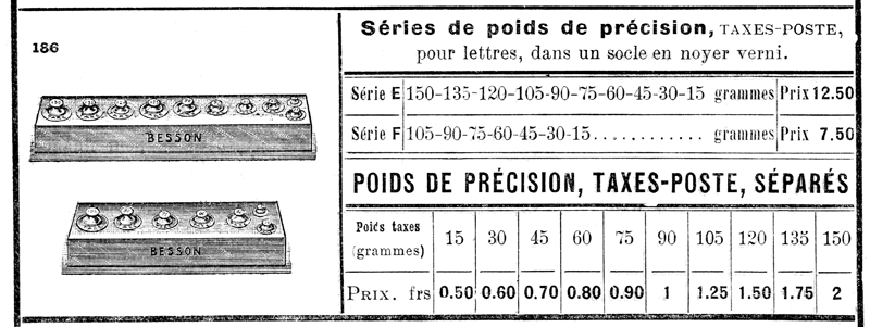Dans les séries de "poids de précison, TAXES-POSTE pour lettres" proposées par la MAISON BESSON au début du XIXe siècle, le poids de 7,5 grammes à disparu... |