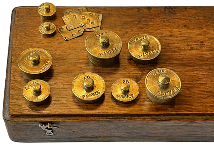 Boîte de pesage monétaire, dimensions 18 x 8,5 x 3,5 cm - Seconde moitié du XIXème siècle |