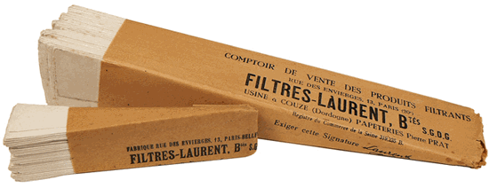 Deux étuis de 5 filtres plissés fabriqués par les PAPETERIES Pierre PRAT à COUZE (Dordogne) |