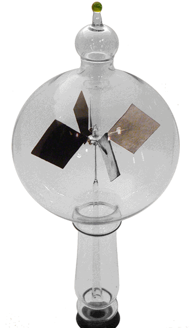 Quatre ailettes très légères dont une face est noircie et mate et l'autre argentée et réfléchissante sont fixées, en croix et toutes dans le même sens, à un petit chapeau en verre. L'ensemble forme un moulinet qui repose sur une pointe métallique verticale à l'intérieur d'une ampoule dans laquelle on a réalisé un vide assez poussé mais loin d'être parfait : il est en effet nécessaire qu'une partie