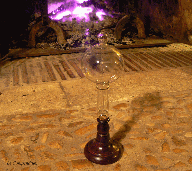 Près de la cheminée, la chaleur est forte et les ailettes tournent à vive allure... L'expérience peut être réalisée sous les rayons du soleil, près d'une lampe à incandescence, ou tout appareil de chauffage. La chaleur de la paume d'une main contre l'ampoule est suffisante pour provoquer, au bout de quelques secondes, un lent mouvement de rotation. |