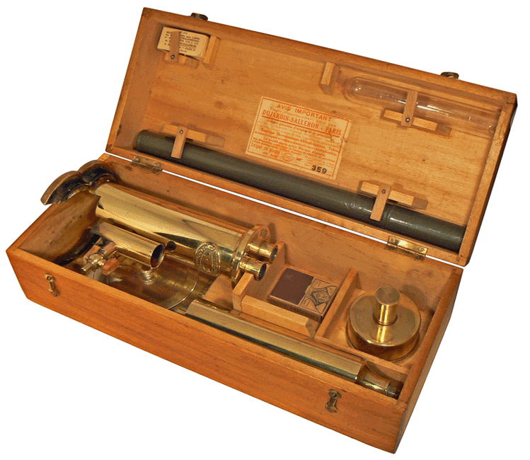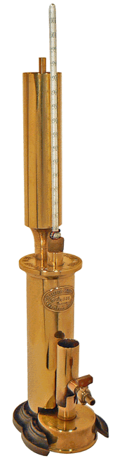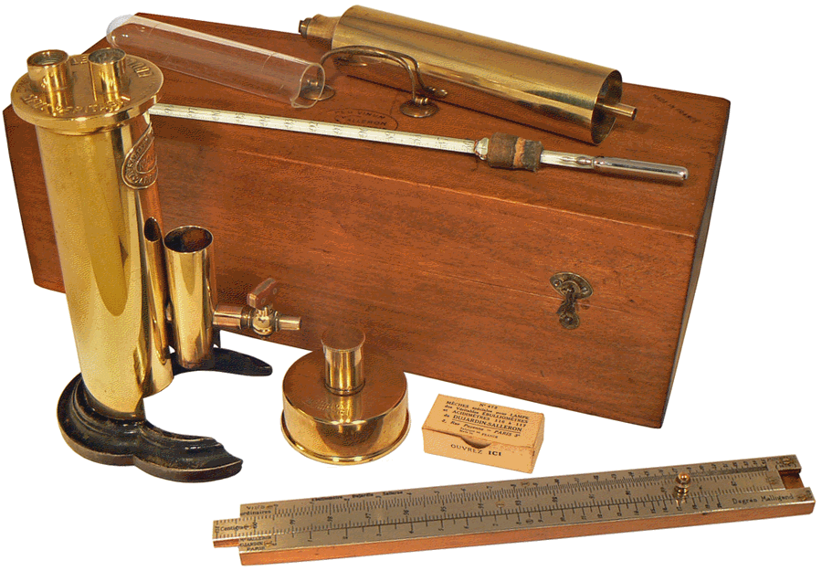 Ebullioscope pour Malligand et Levesque, ébulliomètre pour Dujardin-Salleron, ébulliographe pour Barus : le principe de la détermination du degré alcoolique est le même mais chacun des instruments de dosage demeure unique ou presque. La concurrence devait être rude, dans la première moitié du XXe siècle si on en croit certains propos rencontrés dans les catalogues ou ouvrages de l'époque énumérant les avantages de l'ébulliomètre Dujardin-Salleron "construit en 1880 et perfectionné sans cesse" : (...) Appareil vertical, robuste, peu encombrant. Aucune vis, cause de fuite, aucun bras coudé rendant l'appareil instable et sans aplomb (...) Thermomètre distinct, facile à remplacer immédiatement sans obligation de retour d'aucune pièce d'où : économie (...). Il suffit de regarder l'ébullioscope concurrent, dont le Compendium renferme un exemplaire, pour comprendre le choix des arguments. Mais, nous ne sommes pas là pour rallumer la mèche ... |