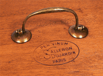 Dans les coffrets contenant le matériel, le disque ébulliométrique a, peu à peu, remplacé la règle en maillechort sur support en bois de poirier. Le principe reste le même : la partie mobile porte l'échelle thermométrique et de part et d'autre, sont gravées l'échelle exprimée en degrés alcooliques du vin et l'échelle en degrés Malligand. |
