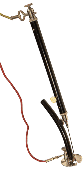 Ce type de générateur de courant continu est utilisé dès la deuxième partie du 19ème siècle pour l'alimentation des appareils d'exploration des cavités du corps humain, la cautérisation et l'électrothérapie, c'est-à-dire l'électrisation de certains organes ou tissus humains dans le but de soigner. Pour "appliquer l'électricité", on a recours à des excitateurs de différentes formes, semblables à ceux que l'on trouve dans les coffrets d'électrothérapie faradique. |