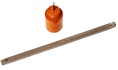 Deux aimants cylindriques puissants sont percés de part en part suivant leur axe de symétrie. L'un des aimants, fixe, est déposé à la base d'une tige verticale en bois ciré dont le diamètre est légèrement inférieur à celui de la perforation des aimants. L'autre aimant, mobile, est libéré du haut de la tige. La face inférieure de ce deuxième aimant est de même nom que la face supérieure du premier