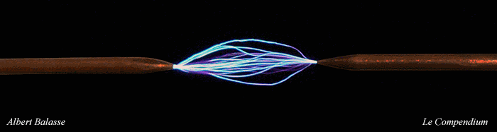 Les étincelles obtenues - dans l'air et en alimentant notre bobine avec une pile moderne de 6 volts - atteignent 30 millimètres de longueur, ce qui correspond à une tension entre les électrodes de plusieurs centaines, voire dépassant le millier, de volts. L'intensité du courant électrique circulant dans la bobine induite demeurant très faible, l'utilisation raisonnée de l'appareil ne présente pas de réels dangers. Toutefois, le contact avec les bornes de la bobine induite provoque une vive commotion ... |