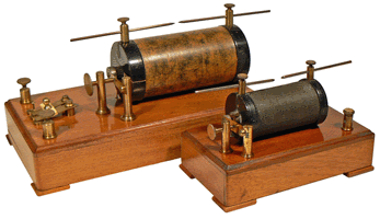 Les vignettes qui suivent mènent a des pages du Compendium relatives à Ruhmkorff, à des petites bobines de type Ruhmkorff, et à un coffret d'électrothérapie sorti de ses ateliers. Il suffit de cliquer sur une vignette pour entrer directement sur la page qui lui correspond. |