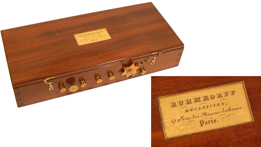 Coffret d'électricité médiale par RUHMKORFF - Dimensions 26 x 14 x 5 cm - Vers 1870 |