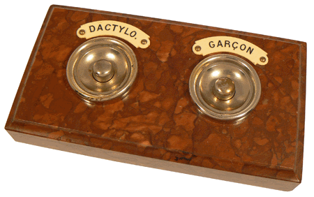 Il y a longtemps que, sur leur socle en porphyre, ces deux boutons d'appel n'aboutissent plus où que ce soit... |