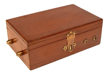 Coffret d'appareil d'induction. Dimensions : 11,2, x 6,8 x 4 cm. Vers 1920 |