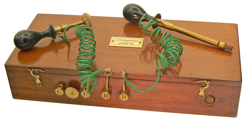 Posés sur le coffret, les différents excitateurs et leurs manches isolants, en bois laqué. | |||||||||||||||||||||||||||||||||||||||||||||||||||||||||||||||||||||||||||||||||||||||||||||||||||||||||||||||||||||||||||||||||||||||||||||||||||||||||||||||||||||||||||||||||||||||||||||||||||||
