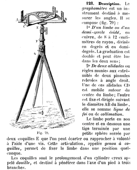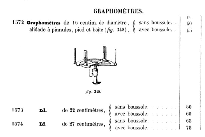 En 1853, notre graphomètre de 22 centimètres de diamètre, sans boussole, est vendu 50 francs... |