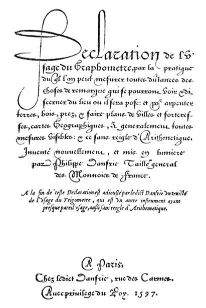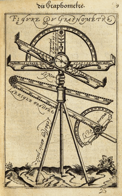 A partir d'un ouvrage de 1597 numérisé par Google Books :"DÉCLARATION DE L'USAGE DU GRAPHOMÈTRE" |