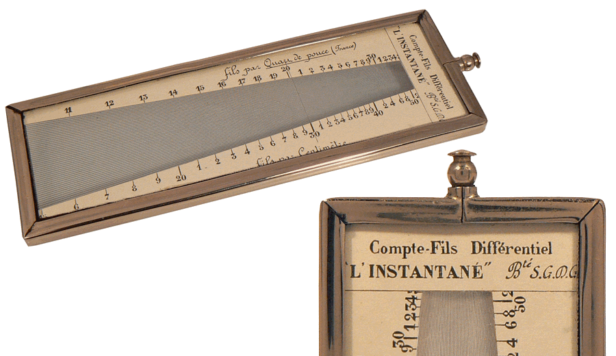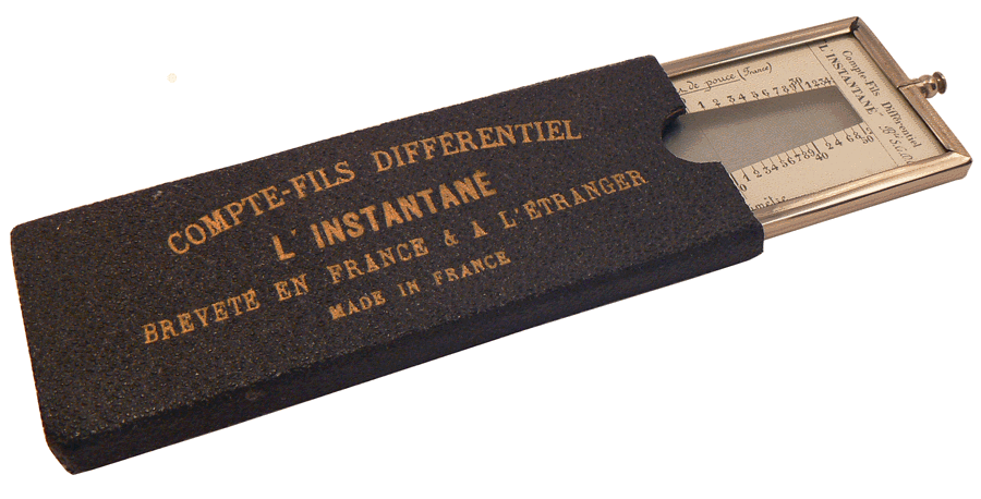 Compte-fils différentiel "L'INSTANTANÉ" posé sur son étui - Dimensions 14 x 4,5 cm - France - Vers 1920 |
