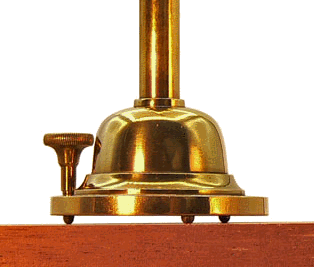Avant toute mesure, le "zéro" doit être effectif lorsque le plongeur est suspendu par son fil de platine, seul et dans l'air, à l'extrémité du fléau. La correction est obtenue en agissant sur la vis calante du pied. |