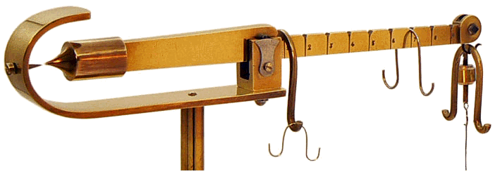 La balance de Westphal et des instruments proches, comme la balance de Mohr au fléau à bras égaux, ou celle de Collot qui propose une lecture avec curseur à vernier, portent le nom générique de balance aréothermique, l'aréométrie englobant les méthodes de mesure de la densité. Un nombre non négligeable de catalogues et ouvrages renferment une coquille dans le nom qui devient, alors, balance aérothermique. Comme on peut le voir ci-dessous, cette balance "aérothermique" s'est même glissée dans les dessins de la planche "BALANCES" du NOUVEAU LAROUSSE ILLUSTRÉ des années 1900. Toutefois, on parle bien de balance aréothermique, page suivante, dans le texte explicatif... |
