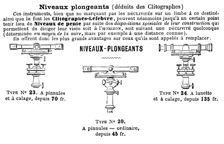 La notice précise sous le titre "Observations préliminaires" : "Nos instruments sont trop en faveur auprès des divers Services de l'Etat et des grandes exploitations, telles que Chemins de fer, Charbonnages et Usines en général, pour qu'il nous soit utile d'insister ici sur les avantages qu'ils offrent sur ceux qu'ils sont appelés à remplacer, quand il s'agit surtout de Relevés rapides, d'Avant-projets ou de Tracés de routes et de chemins de fer, etc, etc." |