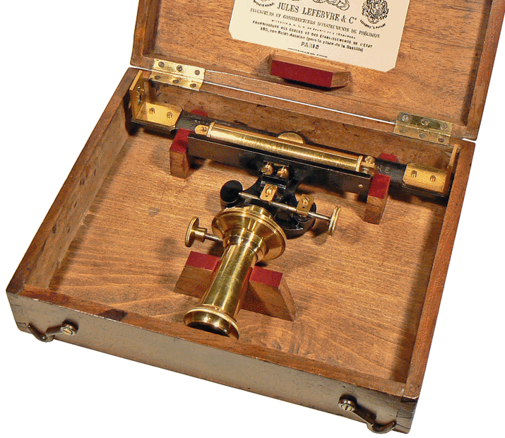 Niveau plongeant à pinnules, type n° 20, de Jules Lefebvre et Cie - Hauteur 19 cm, longueur 24 cm - Vers 1875 |