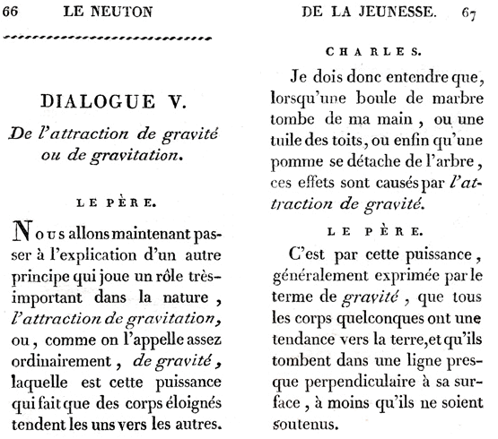 Le traducteur précise, avant d'entamer les dialogues entre le père et ses enfants, Emma et Charles : "Neuton s'écrit en anglais Newton, mais nous avons préféré de faire répondre l'orthographe de ce nom à la prononciation francaise". |