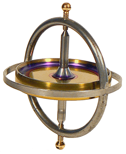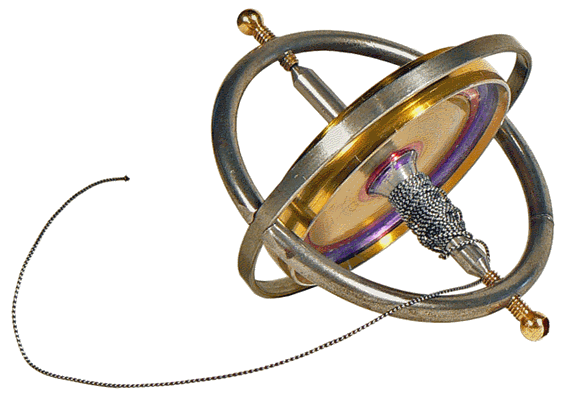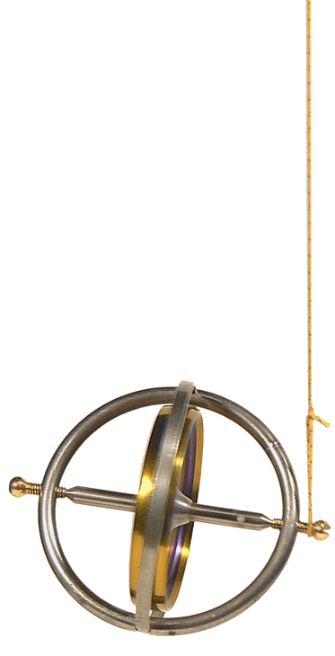 Les propriétés du gyroscope sont mises à profit dans de nombreuses circonstances nécessitant le maintien de la position axiale d'un objet ou d'un dispositif. Le gyroscope est utilisé, par exemple, dans la construction des pilotes automatiques et des compas gyroscopiques. Il est présent, aujourd'hui, dans le support de certaines caméras "de poing" qu'il permet de stabiliser lors de la prise de vues. Le gyroscope, sous une forme plus élaborée que celle de notre modèle, à été imaginé en 1852 par J.-B.-L. FOUCAULT, physicien français, afin de mettre en évidence le mouvement de rotation de la Terre. On lui devait déjà la fameuse expérience du pendule suspendu sous la coupole du Panthéon en 1851, réalisée pour le même objet. |