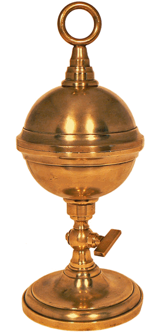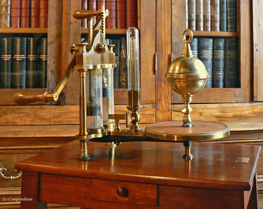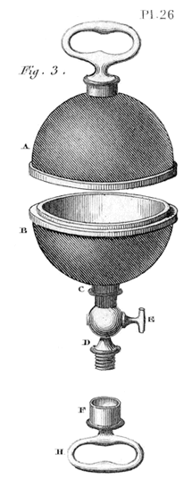 Le pied dévissé, les hémisphères peuvent être reliés à la machine pneumatique pour que soit réalisé le vide à l'intérieur de la cavité. |