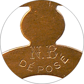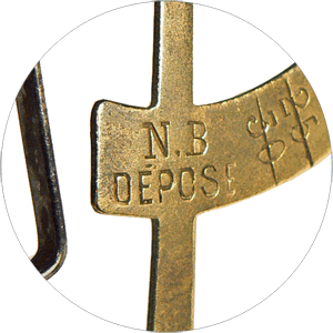 Sur ce premier modèle, qui porte la marque "N.B" pour Narcisse Briais, le secteur gradué est fixe. Lors de la pesée de la lettre, c'est l'aiguille, solidaire du levier terminé par un contrepoids, qui se déplace devant la graduation. |