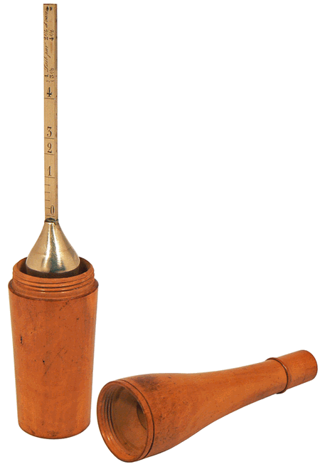 Galactomètre, ou pèse-lait, en argent dans son étui en buis - Hauteur 15,3 cm |