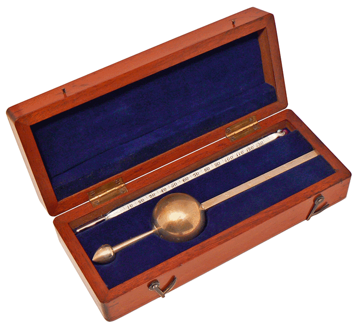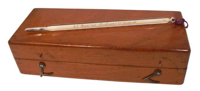 Galactomètre et thermomètre dans leur coffret - Longueur du galactomètre : 18 cm - Royaume-Uni - Fin du XIXe siècle |