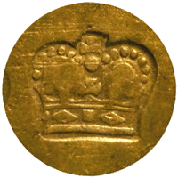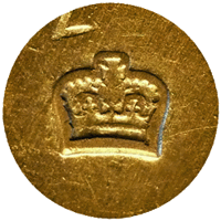 Dans l'angle du tableau des masses monétaires, les armes royales du Royaume-Uni. On peut lire en Français - langue officielle de ses souverains - la devise de la monarchie britanique, "DIEU ET MON DROIT", ainsi que celle de l'ordre de chevalerie de la Jarretière, "HONI SOIT QUI MAL Y PENSE" (HONI avec un seul N selon l'ancienne orthographe). |