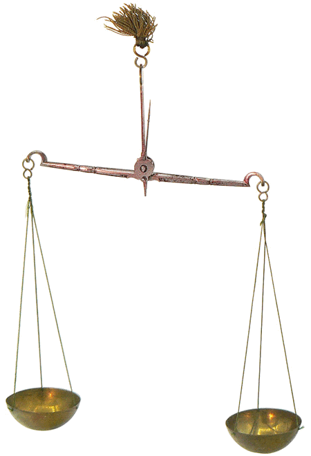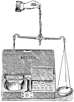 Les coupelles de 3,7 cm de diamètre sont prêtes à recevoir diamants, perles fines ou pierres précieuses pour l'une d'elles et masses marquées en carat, les "poids carats", pour l'autre... |