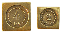 Notre carat mesure 5 mm de côté. Il porte, comme les autres poids de la boîte, les initiales de L. Exupère. |
