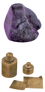 Dans le plateau de gauche, un morceau de Charoïte, jolie pierre d'origine sibérienne. |