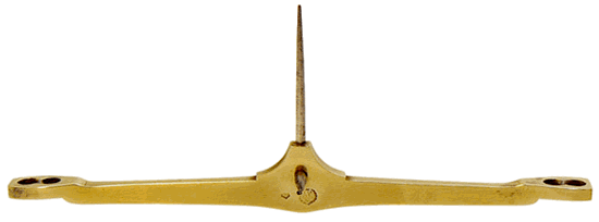 Le fléau de 13 cm porte sous son couteau central la marque du balancier : un J et un M entrelacés entre deux palmes. Dans son numéro du 1er trimestre 2001, le bulletin de la SOCIÉTÉ MÉTRIQUE DE FRANCE présente le "Registre relatif à l'insculpation des Fabricants balanciers" entre 1826 et 1946 (L'insculpation consiste en l'inscription au registre avec dépot d'une plaque frappée à la marque du constructeur). Il s'agit, ici, de la marque de Julien Michallet, de Champigny, inscrit en 1919. Notre trébuchet porte le n° 27, gravé sur le chant du fléau. |