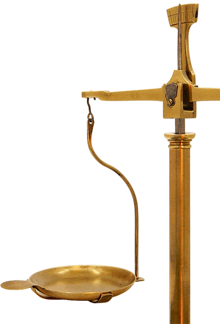 En appuyant sur la pédale située à la base de la colonne, on élève le fléau ce qui libère les plateaux. L'opération permet de vérifier les équilibres. |