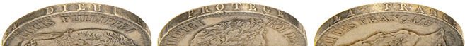La tranche de la pièce est marquée, en relief, "DIEU PROTEGE LA FRANCE" |