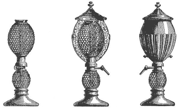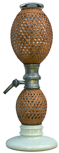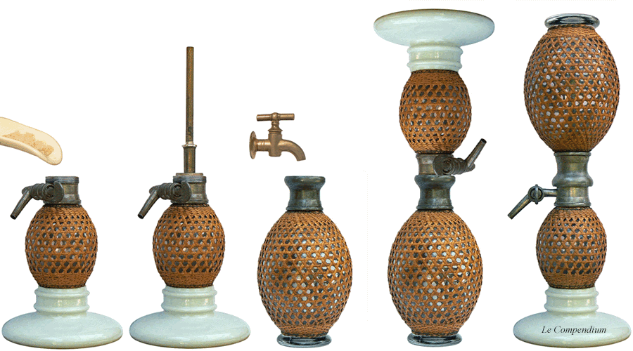L'appareil est utilisé pour préparer des petites quantités d'eau de Seltz ou de certaines boissons gazeuses pour un usage domestique. Il se compose de deux boules ovoïdes en verre enveloppées dans un clissage en jonc pour protéger des chocs et empêcher, en cas d'explosion, la projection des éclats. Avec ce modèle, il est possible d'obtenir un litre d'eau de Seltz à partir d'un mélange pulvérulent de 18 g d'acide tartrique et de 21 g de bicarbonate de sodium (on parlerait, aujourd'hui, en respectant les règle de la nomenclature chimique, d'hydrogénocarbonate de sodium). |