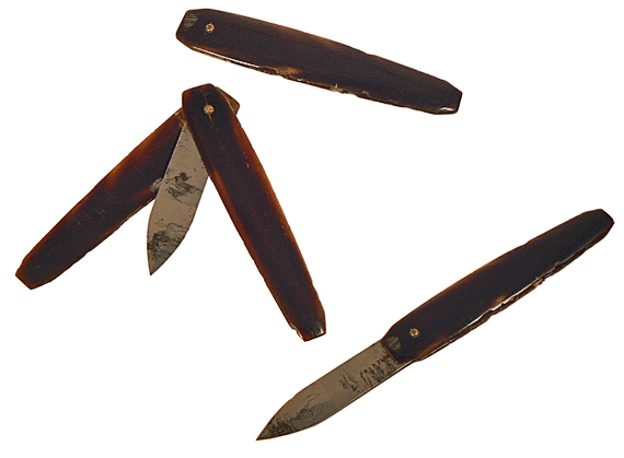 Lancette à saignée - manche (chasse) en écaille - longueur minimum 6 cm et maximum 9,5 cm - fin 19e siècle
