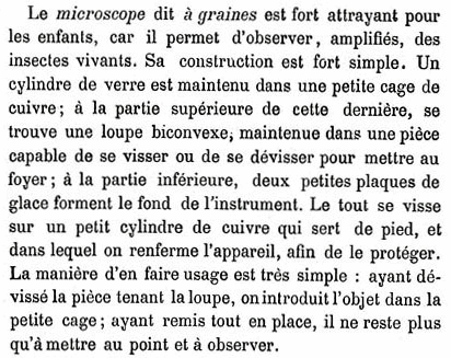 Dans son Traité Théorique et Pratique du Microscope et des Préparations, L'ÉTUDIANT MICROGRAPHE, Arthur CHEVALIER évoque cet instrument utilisé par les jeunes entomologistes : |