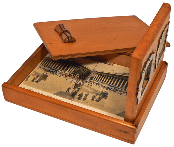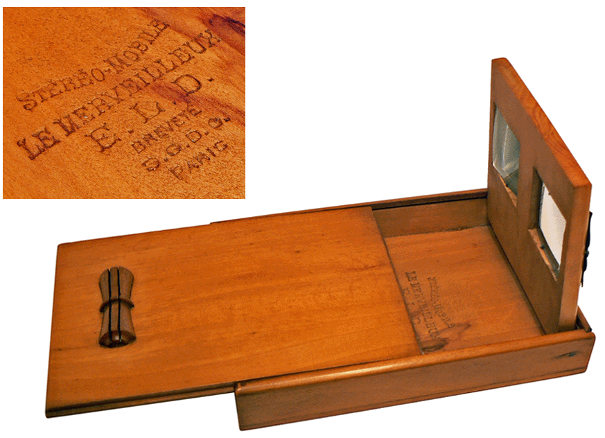 Stéréoscope pliable (16 x 11,5 x 2,5 cm) pour cartes postales stéréoscopiques de 14 x 9 cm - E.L.D. (E. Le Deley) - Paris, vers 1900