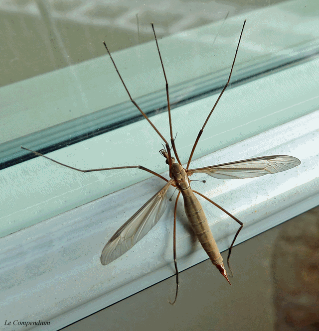 Cette tipule qui se repose sur le bas de la fenêtre est, elle, bien vivante ... |