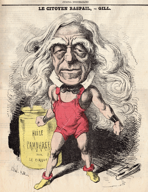 Ci-dessous, dans son TRAITÉ ÉLÉMENTAIRE DE PHYSIQUE (édition de 1855), A. GANOT décrit le microscope simple utilisé par François-Vincent Raspail. A droite, il s'agit du détail d'une représentation de Raspail, visible dans sa totalité au bas de cette page. |
