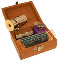 Le principe est celui du microscope de poche d'origine allemande, le Taschenmikroskop dont on rencontre plusieurs exemplaires dans le Compendium. La préparation traverse le corps du microscope et est maintenue en place, pressée par la platine à ressort. Pour observer, il suffit de diriger la base, ouverte, de l'instrument vers une source de lumière afin d'éclairer le sujet. La mise au point est réalisée par tirage de l'œilleton. |