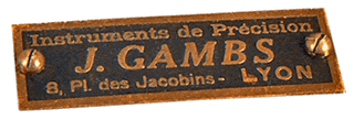 Joseph Gambs s'installe dans le centre de Lyon en 1903. On le trouve 8 Place des Jacobins, dans l'ancienne maison des Frères Boulades également spécialisés dans la fabrication d'instruments de précision et, plus tard, au 4 de la rue Président-Carnot. |