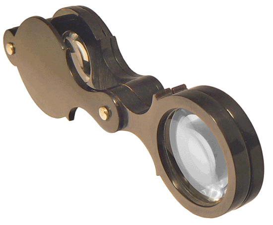 Tri-loupe à recouvrement - Longueur fermée 7,3 cm, ouverte 12,4 cm ; épaisseur 2,5 cm |