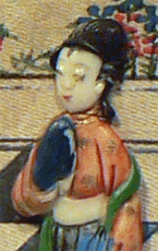 Le modèle a été choisi sur une miniature chinoise du XIXe siècle, en bois, soie et ivoire. L'objet fait partie d'un ensemble de six tableautins de 10,3 par 15 cm dont les faces visibles coulissent en laissant apparaître le dénouement sous un angle plus hardi... |